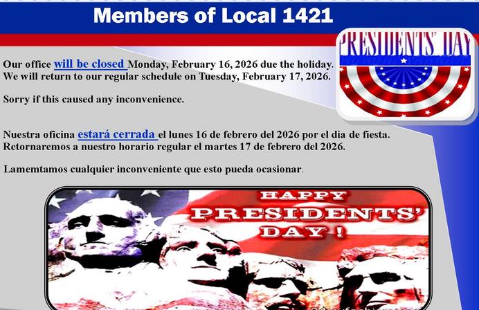 ^Until the above links are working, please contact Local 1421 Office Manager Nancy Troy to join
